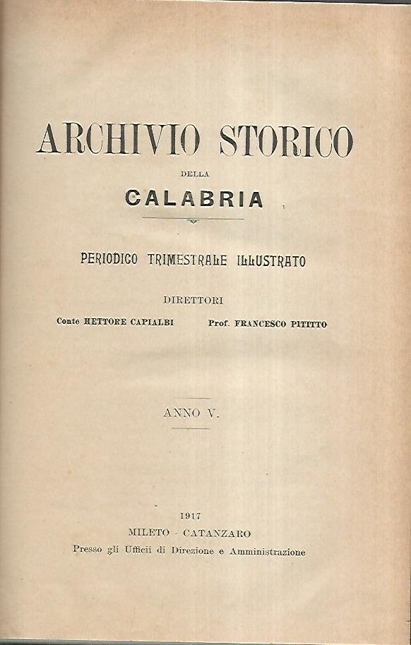 Archivio storico della Calabria. Anno V | Libri antichi e moderni | Hettore Capialbi - Francesco Pititto, ,Hettore Capialbi - Francesco Pititto