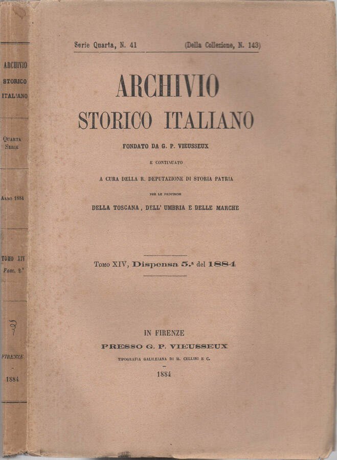 Archivio Storico Italiano fondato da G. P. Vieusseux e continuato a cura della R. Deputazione di Storia Patria per le provincie della Toscana, Dell'Umbria e delle Marche - Serie Quarta - 1884