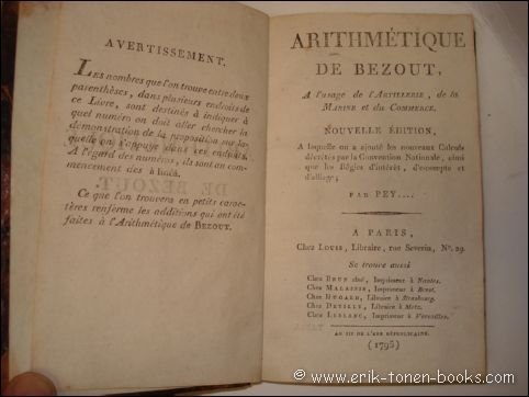 ARITHMETIQUE DE BEZOUT, a l'usage de l'artillerie, de la marine et du commerce. | Libri antichi e moderni | Peyrard