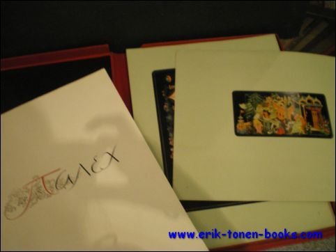 55pp 39 coloured plates all in an original red box. + slipcase. Highlights from the Moscow exhibition of artists of Palekh invluding paintings of miniatures.Text in 3 languages:English,French and Russian. A very good and clean copy.Palekh, the village from which the art originated, traditionally decorated icons in this manner.
