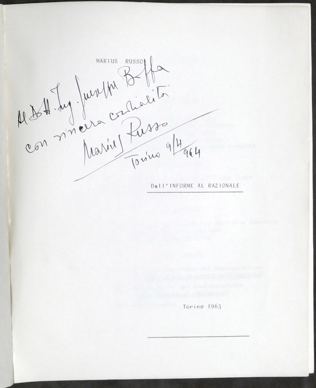 Arte - Marius Russo - Dall'informe al razionale - 1^ ed. 1963 - Autografo autore | Libri antichi e moderni |