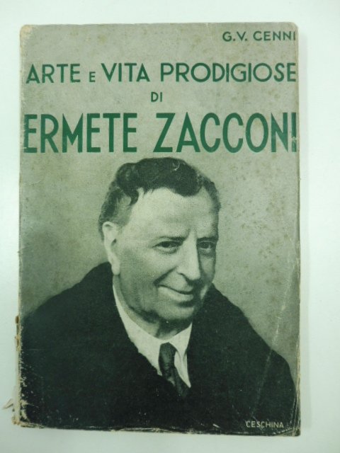 In 16, pp. 101 + (3) con 15 tavv. f.t. Qualche difetto al d. Sporadiche fioriture alle cc. Br. ed. Bel saggio che ripercorre la biografia e la vita artistica di uno dei maggiori attori italiani dell'Ottocento, Ermete Zacconi, noto in particolare per le sue interpretazioni del repertorio naturalista di fine secolo. Bello l'apparato iconografico con molti ritratti dell'attore nelle sue interpretazioni piu' celebri. Nell'opera anche molti stralci tratti dall'autobiografia di Zacconi sono intercalati al racconto dell'autore. Interessante anche il racconto sugli inizi della carriera di Zacconi e su quell'immaginario paese di 'Guittalemme', ovvero la scuola del teatro pezzente dei guitti, dei figli d'arte 'sbattuti' su palcoscenici di fortuna prima ancora di saper parlare, dal quale sono giunti molti grandi attori italiani del secolo fra i quali la stessa Duse.