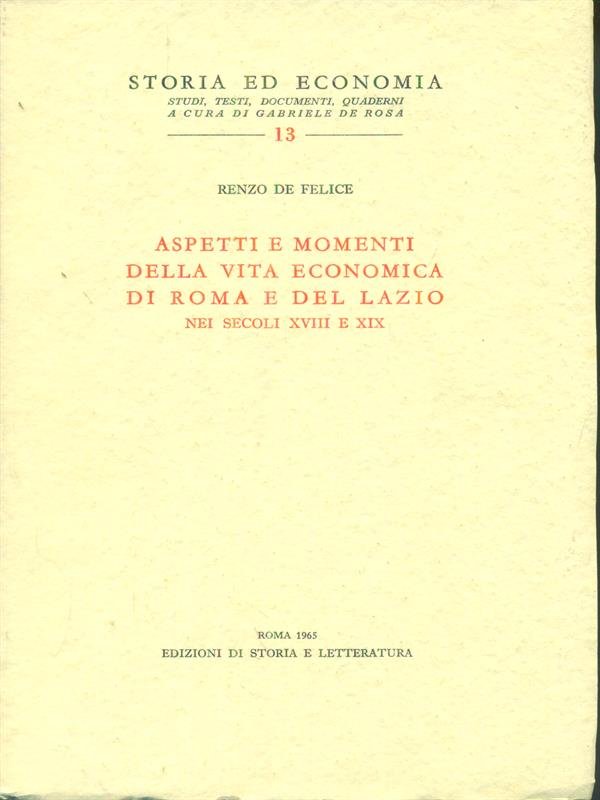 Aspetti e momenti della vita economica di Roma e del Lazio nei secoli XVIII e XIX | Libri antichi e moderni | De Felice, Renzo