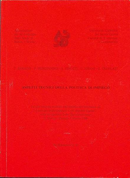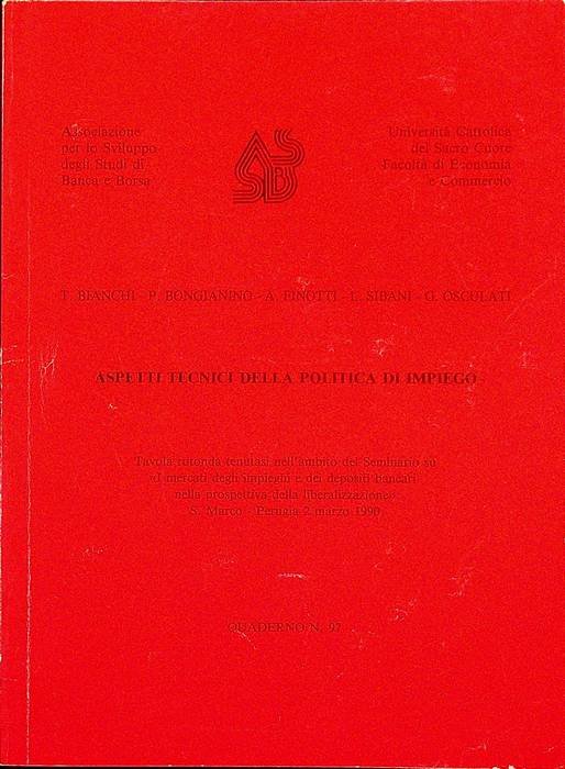 Aspetti tecnici della politica di impiego: tavola rotonda tenutasi nell'ambito del Seminario su ”I mercati degli impieghi e dei depositi bancari nella prospettiva della liberalizzazione”: S. Marco - Perugia 2 marzo 1990. | Libri antichi e moderni | Bianchi, Tancredi - Bongianino, Piero - Finotti, Antonio.