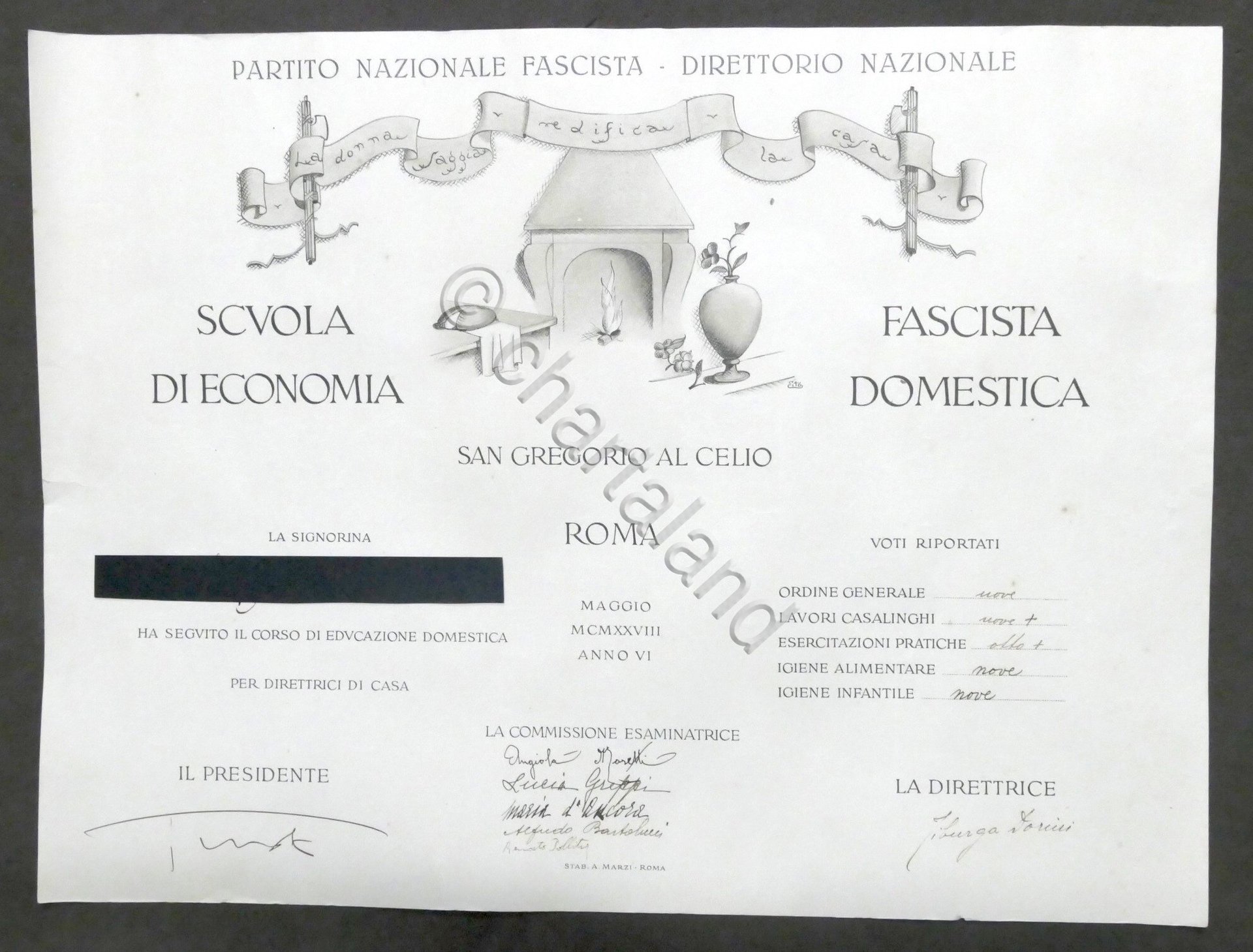 Attestato Scuola Fascista di Economia Domestica San Gregorio al Cielo Roma 1928 | Libri antichi e moderni |