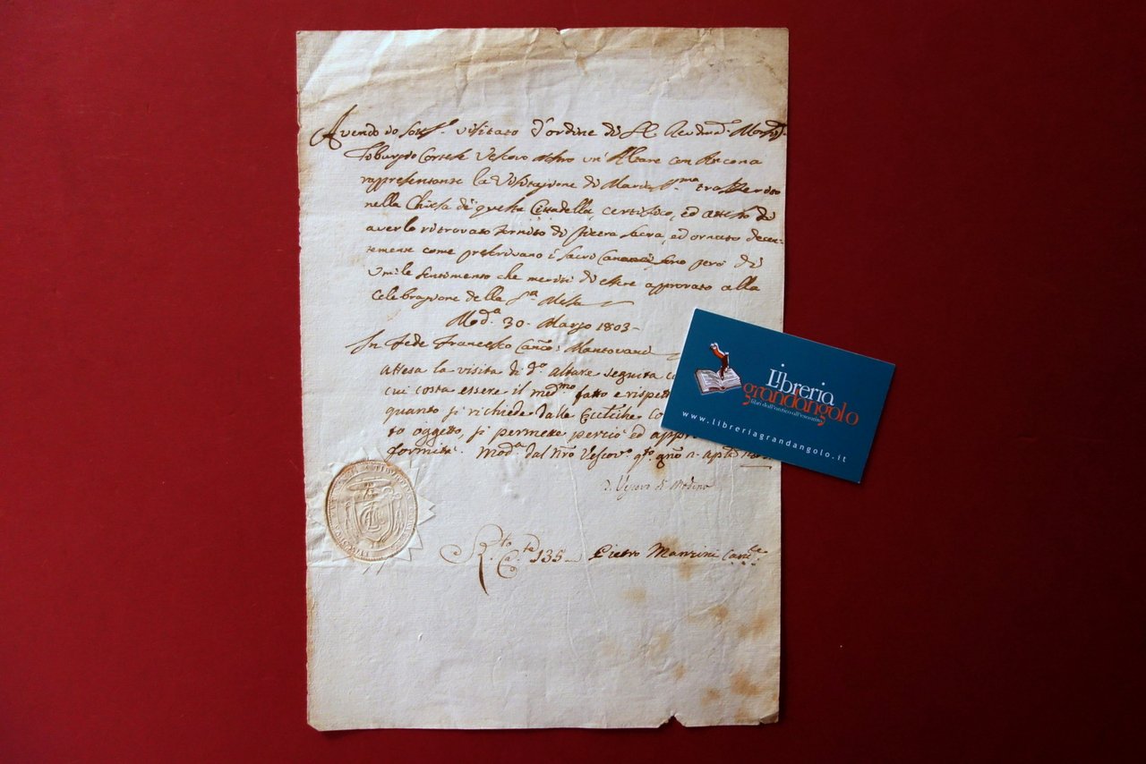 Attestato Vescovile Modena Visita ad Altare Conforme Chiesa Cittadella 1803 | Libri antichi e moderni |