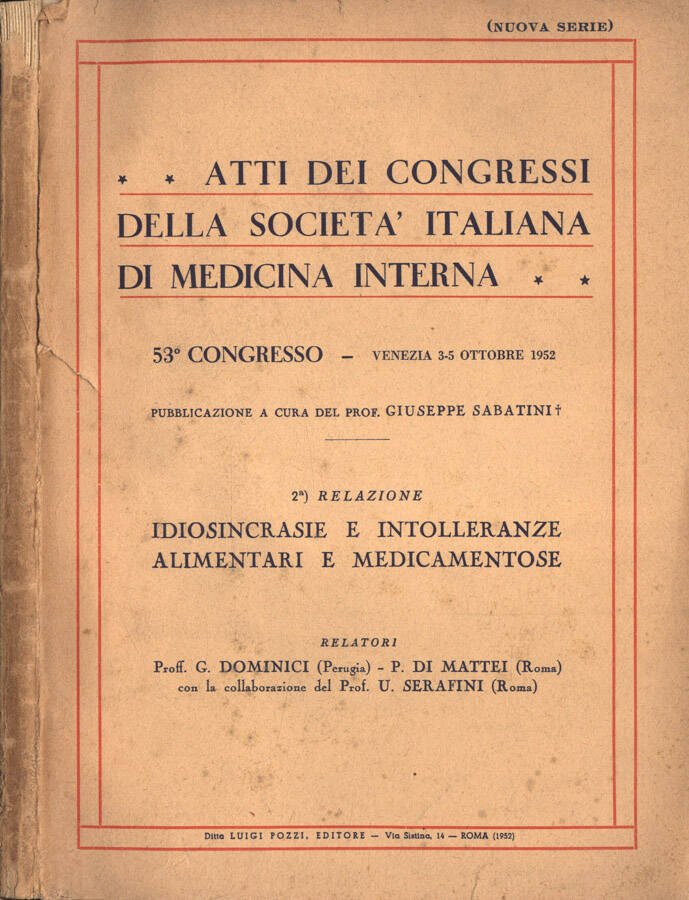 Atti dei congressi della Società Italiana di medicina Interna | Libri antichi e moderni | Prof. Giuseppe Sabatini,