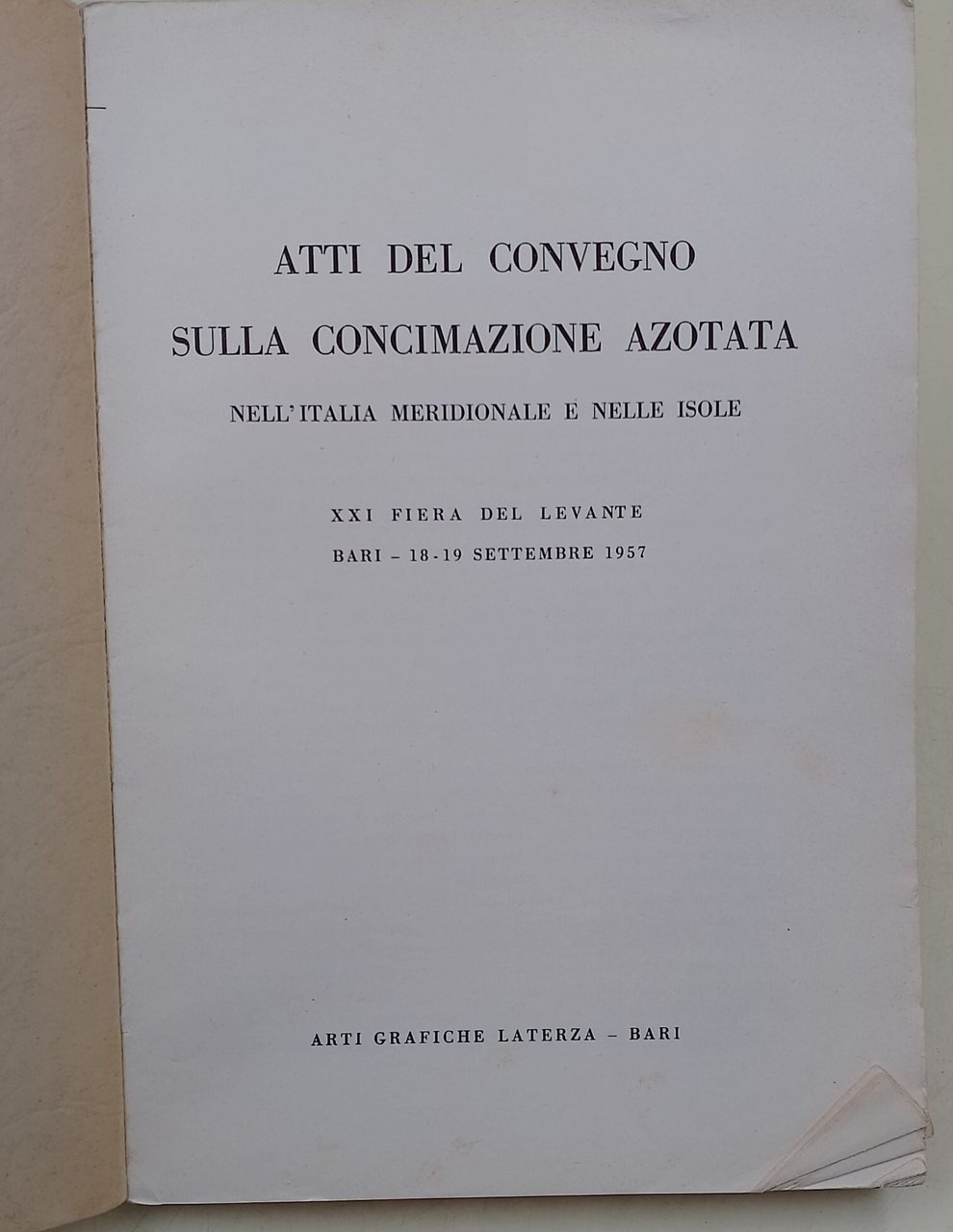 Atti del Convegno sulla concimazione azotata nell'Italia meridionale e nelle isole-XX Fiera del Levante-Bari-18-19 settembre 1957 | Libri antichi e moderni | AA.VV.