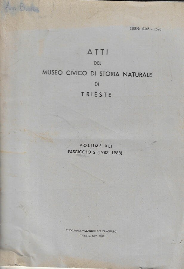 Atti del Museo Civico di Storia Naturale di Trieste vol. XLI- fascicolo II (1987-1988)
