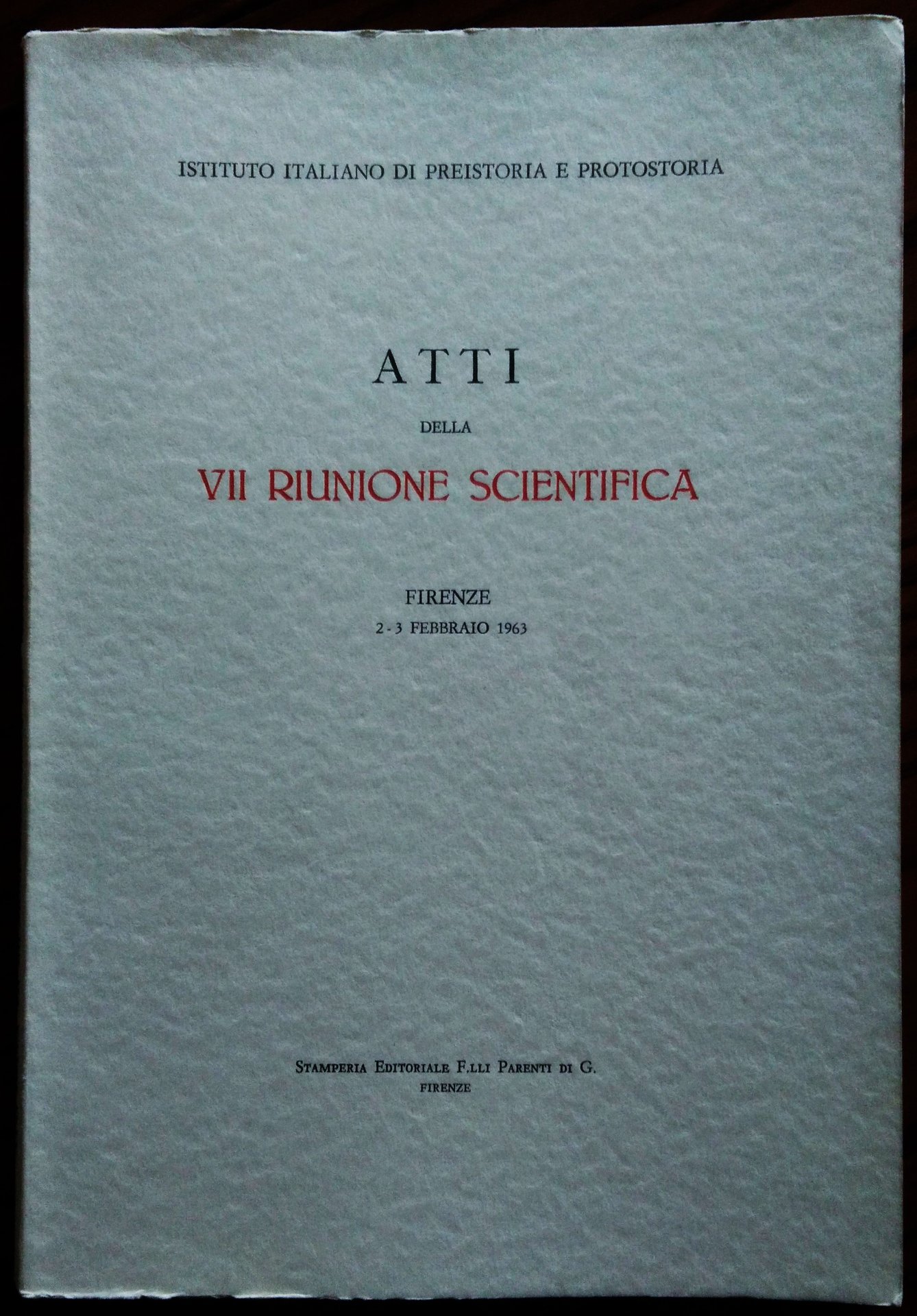 Atti della VII riunione scientifica Firenze 2-3 febbraio 1963. | Libri antichi e moderni | Istituto Italiano Di Preistoria E Protostoria