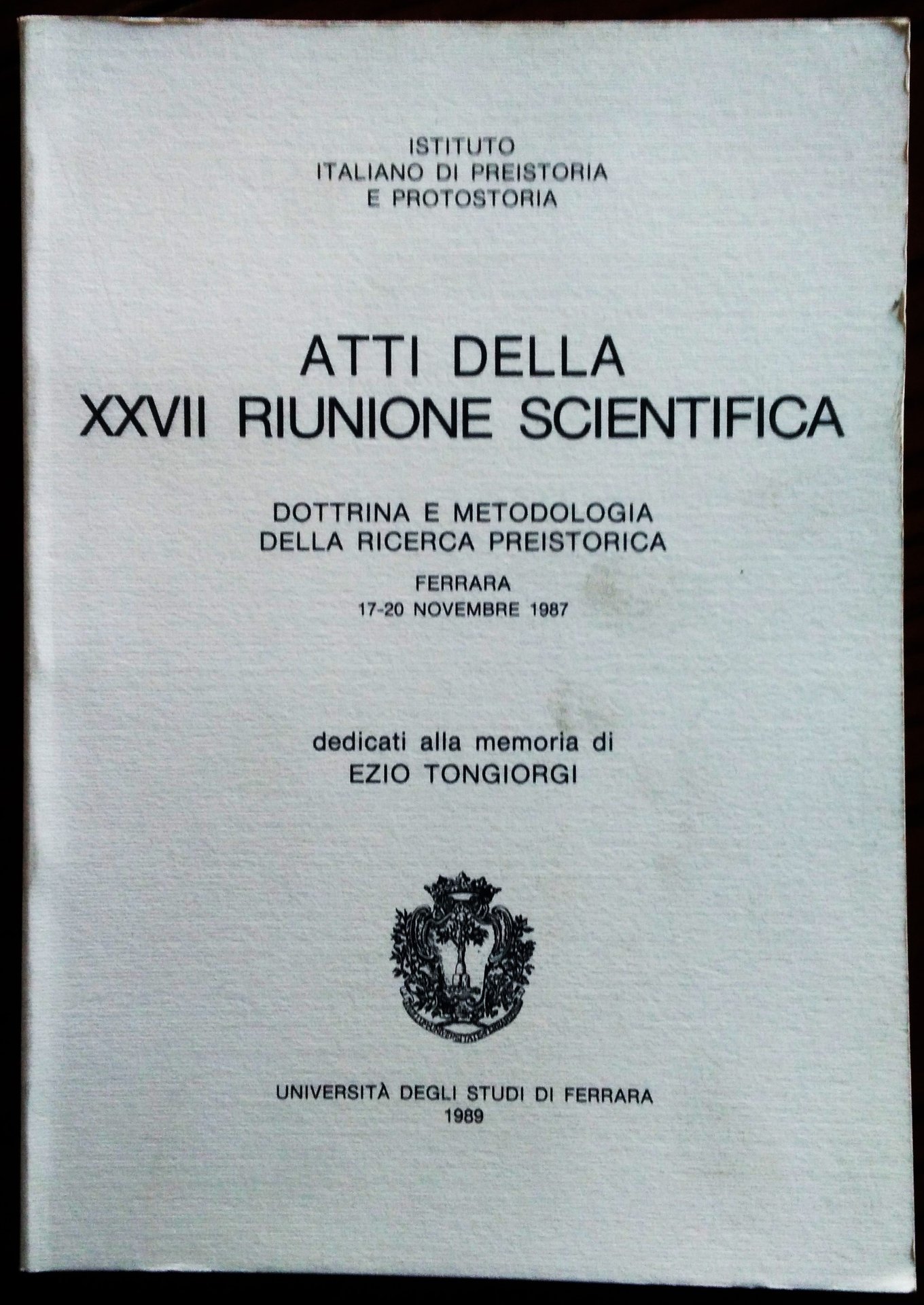 Atti della XXVII riunione scientifica. Dottrina e Metodologia della Ricerca Storica.Ferrara 17-20 novembre 1987 dedicati alla memoria di Ezio Tongiorgi. | Libri antichi e moderni | Istituto Italiano Di Preistoria E Protostoria