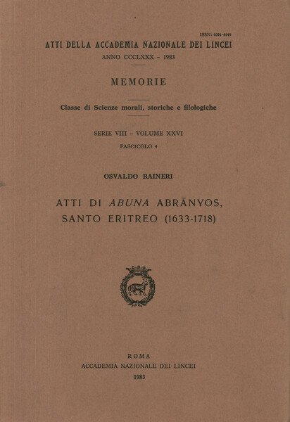 Atti di Abuna Abranyos, santo eritreo (1633-1718) | Libri antichi e moderni | Osvaldo Raineri