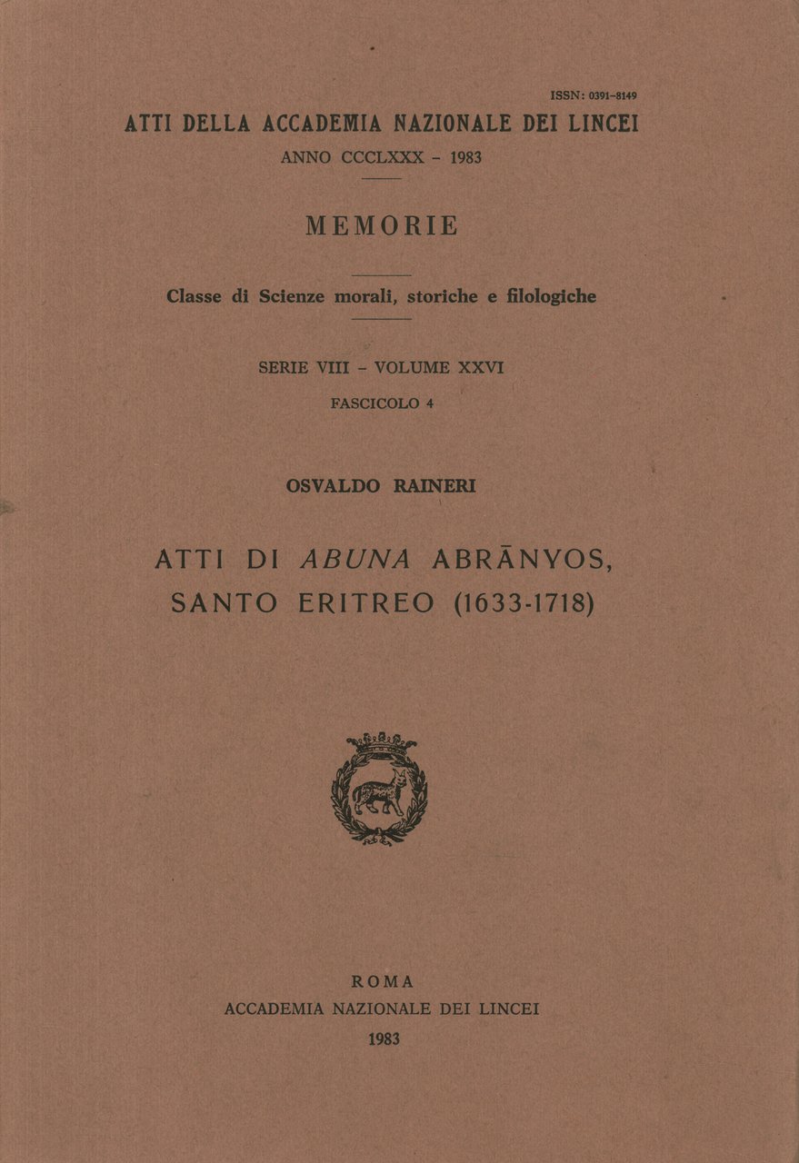 - Memorie dell'Accademia Nazionale dei Lincei. Classe di Scienze morali, storiche e filologiche. Serie VIII-Volume XXVI. Fascicolo 4