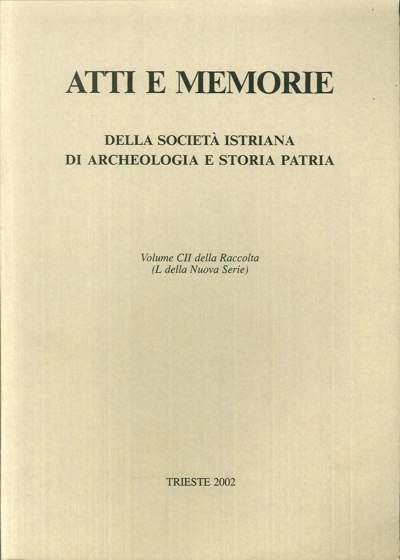 Volume CII della raccolta (L della nuova serie.). Trieste, 2019; br., pp. 574, ill. b/n, cm 17,5x24. (Atti e Memorie della Società Istriana di Archeologia e Storia Patria. 53. 2).