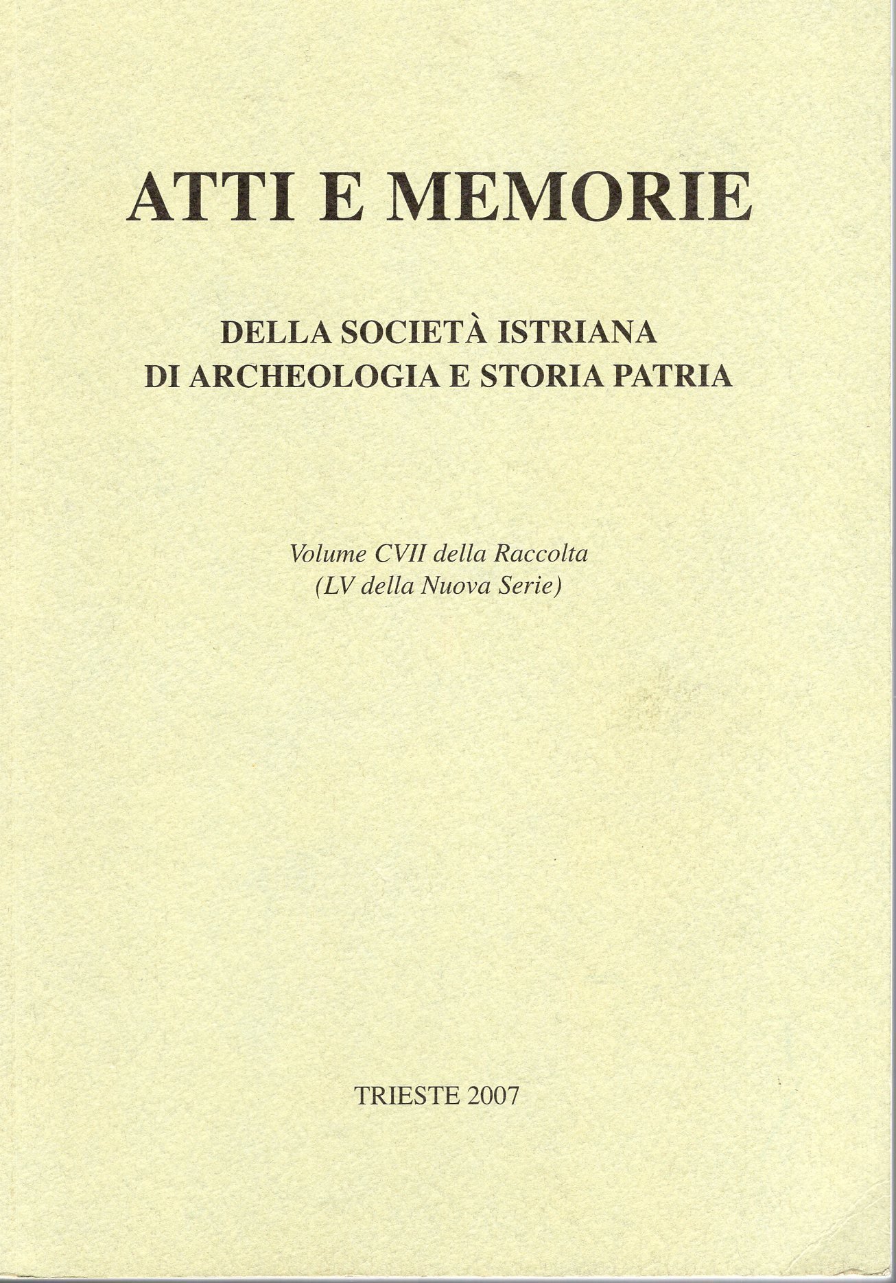 Atti e memorie della società Istriana di Archeologia e Storia Patria Vol. CVII della raccolta ( LV della Nuova Serie )