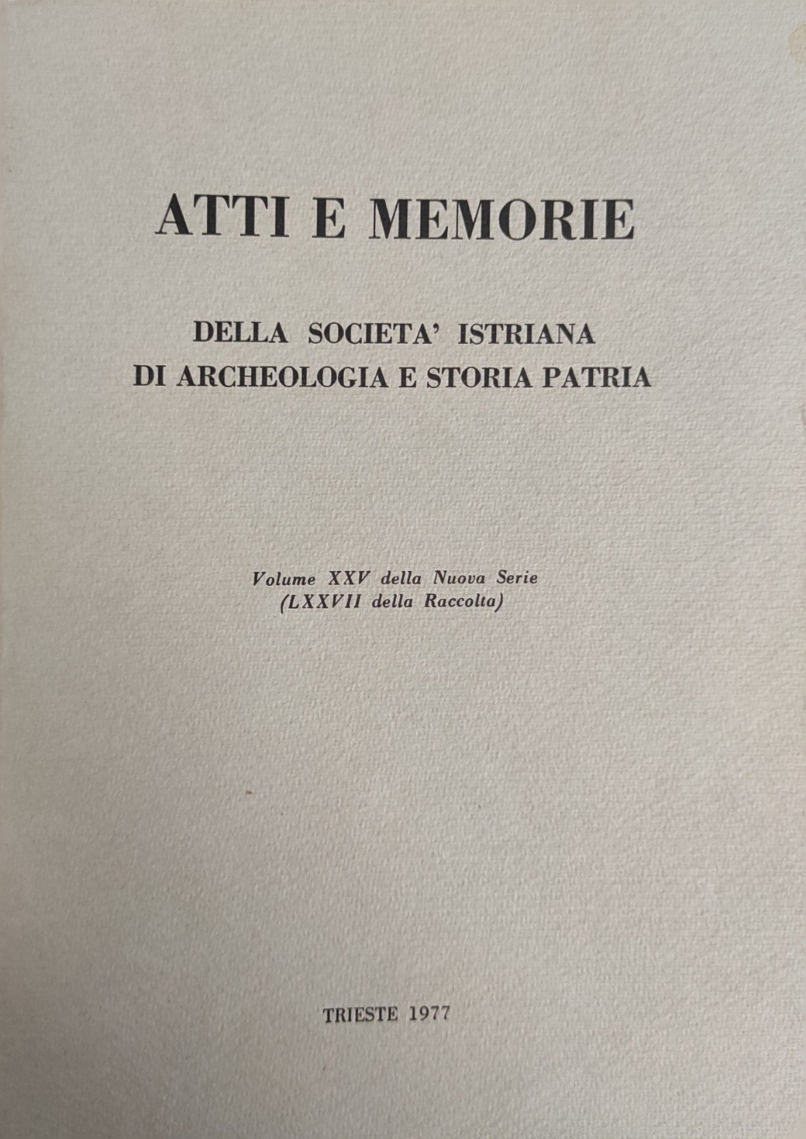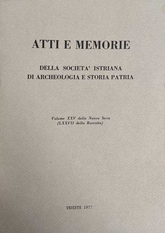 ATTI E MEMORIE DELLA SOCIETÀ ISTRIANA DI ARCHEOLOGIA E STORIA PATRIA