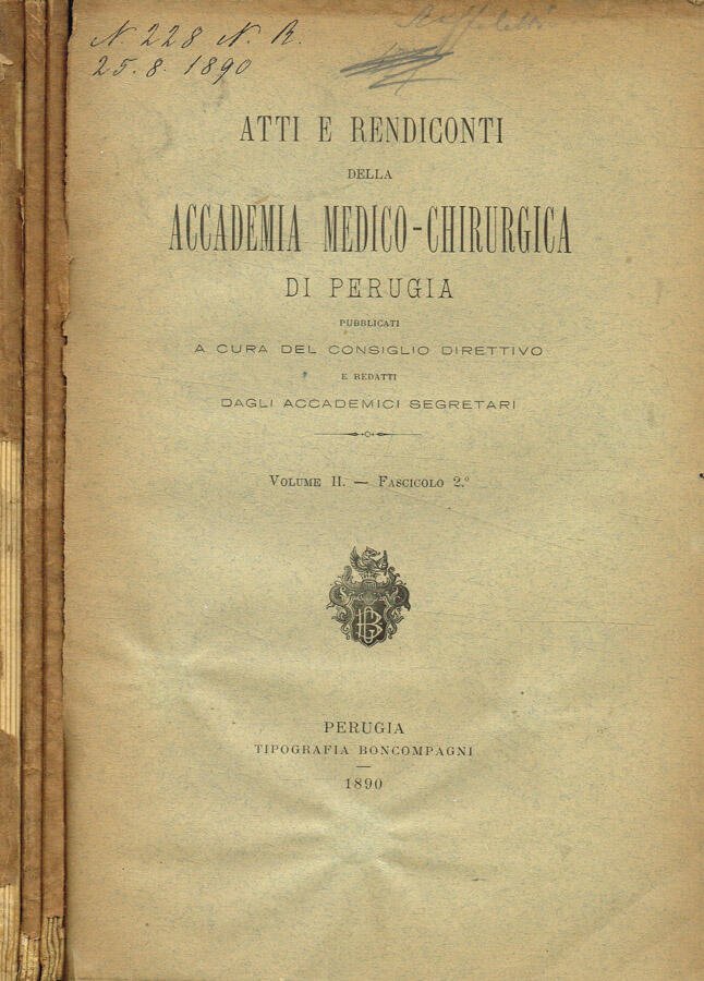 Atti e rendiconti della accademia medico-chirurgica di Perugia. Vol.II, 1890, fasc.II, III, IV | Libri antichi e moderni |