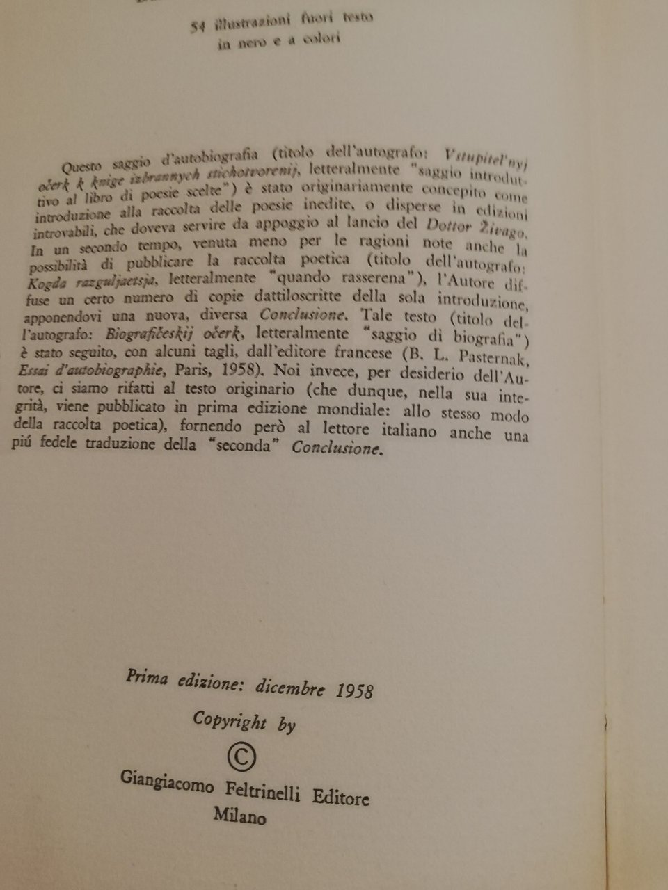 Autobiografia e nuovi versi, Boris Pasternak, 1958, Feltrinelli, prima edizione