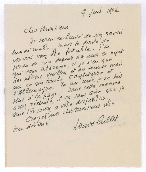Autograph lettercard signed. | Libri antichi e moderni | Gillet, Louis, French Art Historian And Critic (1876-1943).