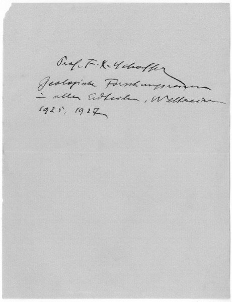 8vo. ½ p. Prof. F. X. Schaffer, Geologische Forschungsreisen in allen Erdteile, Weltreisen, 1925, 1927.
