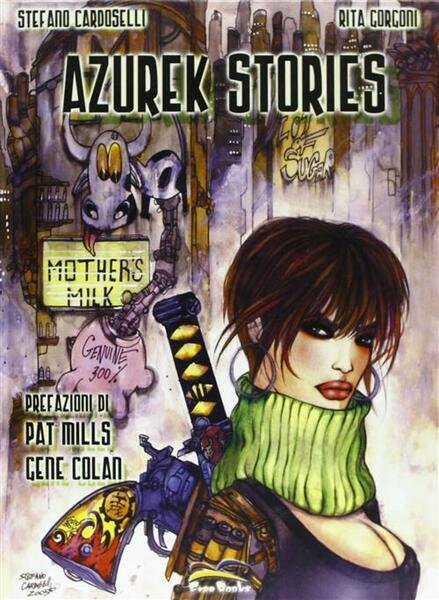 Dettagli Libro<br><br>Sku: PZZLB34686<br>ISBN: 9788889206546<br>Titolo: Azurek Stories<br>Autore: Stefano Cardoselli<br>Editore: Free Books<br>Anno: 2005<br>Pagine: 48<br>Formato: Rilegato<br><br>Dopo lo strepitoso successo ottenuto in America sulla storica rivista Heavy Metal, arriva finalmente anche in Italia Azurek Stories, il surreale mondo creato da Stefano Cardoselli e Rita Gorgoni. La gente di Azurek, megalopoli di un futuro né troppo lontano né troppo impossibile, vive in uno stato di alienazione mentale ed esaltazione perenne. Bruce e suo fratello Stud sono i Disco Brothers, il loro lavoro è fare rapine su commissione a ritmo di dance music anni '70. Jacob Romero invece fa l'ammazza-zombies, ed esegue i suoi incarichi con passione e scrupolo. Le due principali industrie di Azurek, la Mother's Milk e la Lot of Sugar, si bombardano a vicenda nel tentativo di accaparrarsi la supremazia nel mercato delle merendine da mensa scolastica… Questa è la vita quotidiana ad Azurek. Sempre