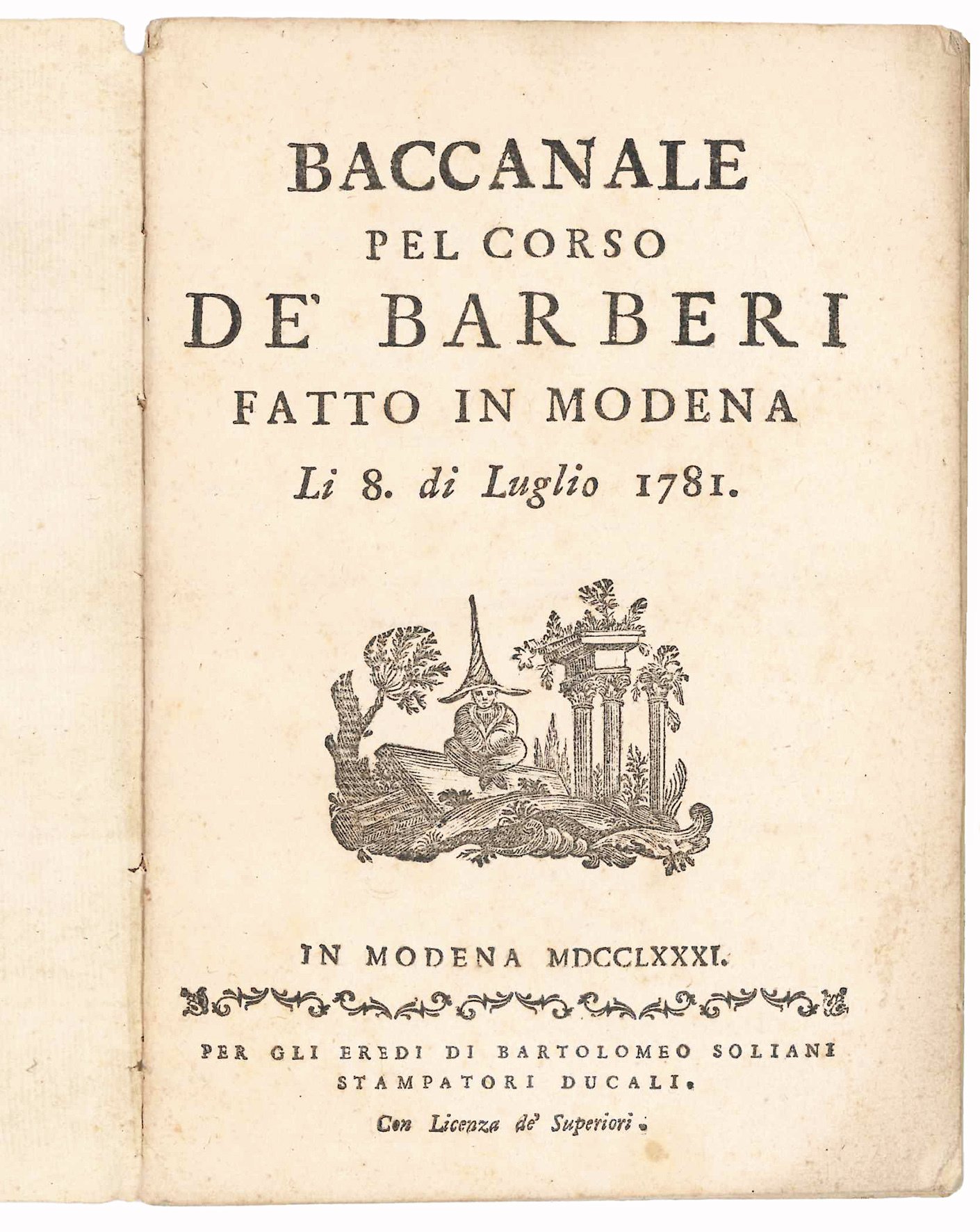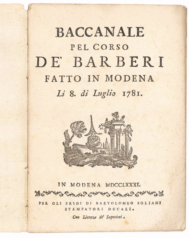 Baccanale pel corso de' Barberi fatto in modena li 8. di Luglio 1781 | Libri antichi e moderni | VICINI, Giovanni Battista (1709-1782)