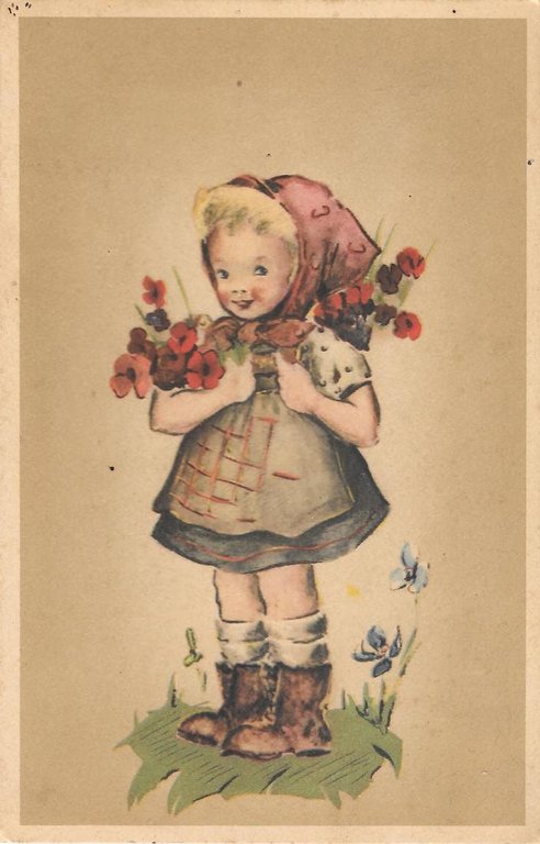 Bambina con mazzo di fiori. Non viaggiata