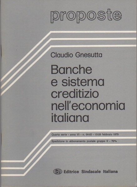 Banche e sistema creditizio nell'economia italiana. | Libri antichi e moderni | Gnesutta, Claudio.