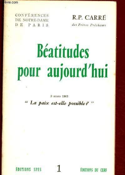 BEATITUDES POUR AUJOURD'HUI N�1 - 3 MARS 1963 : LA PAIX EST-ELLE POSSIBLE ? / CONFERENCE DE NOTRE-DAME DE PARIS | Libri antichi e moderni | Carre R.P.