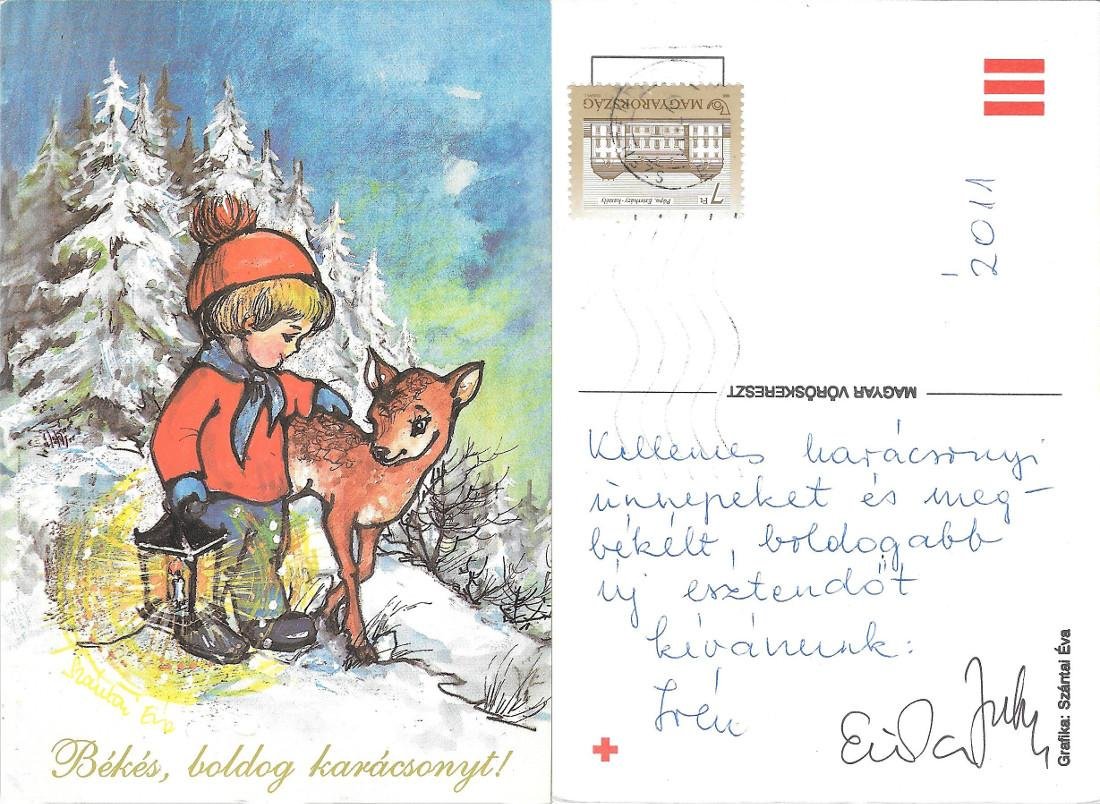 Békés, boldog karácsonyt. Bimbo con cerbiatto. Viaggiata