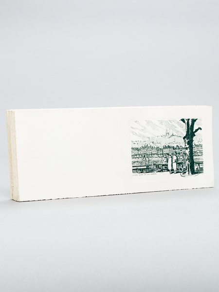 Belle carte orné d'une eau-forte : Lyon, Quai de la Saône [ Lot de 55 cartes à plier sur BFK Rives format 30 x 12 cm ] | Libri antichi e moderni | Anonyme