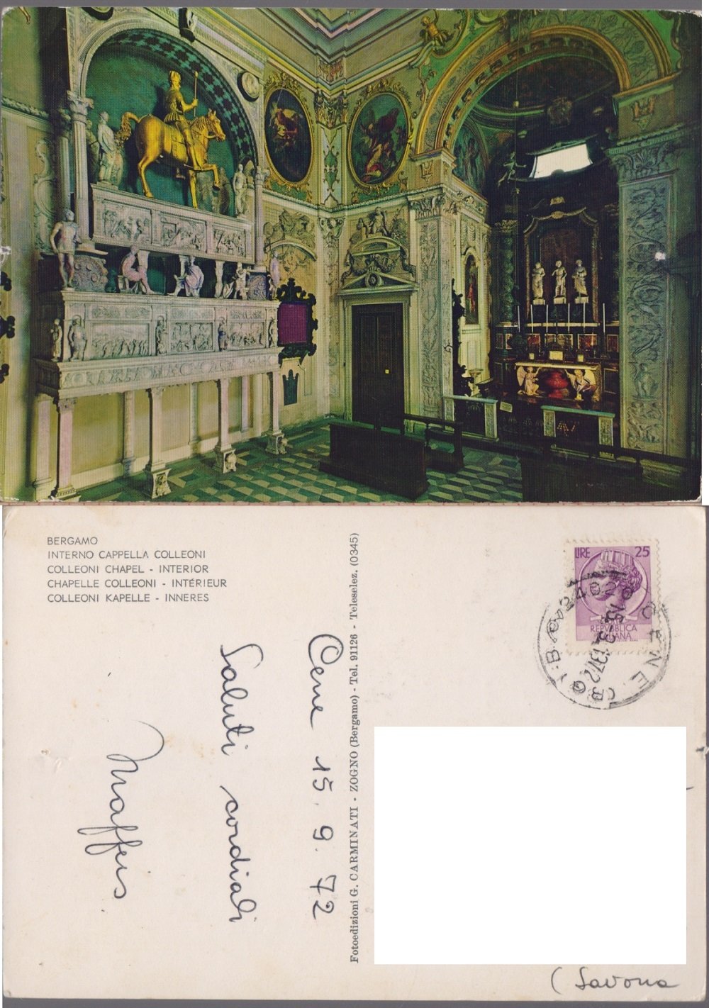Bergamo. Interno Cappella Colleoni. Viaggiata 1972 | Libri antichi e moderni | ,