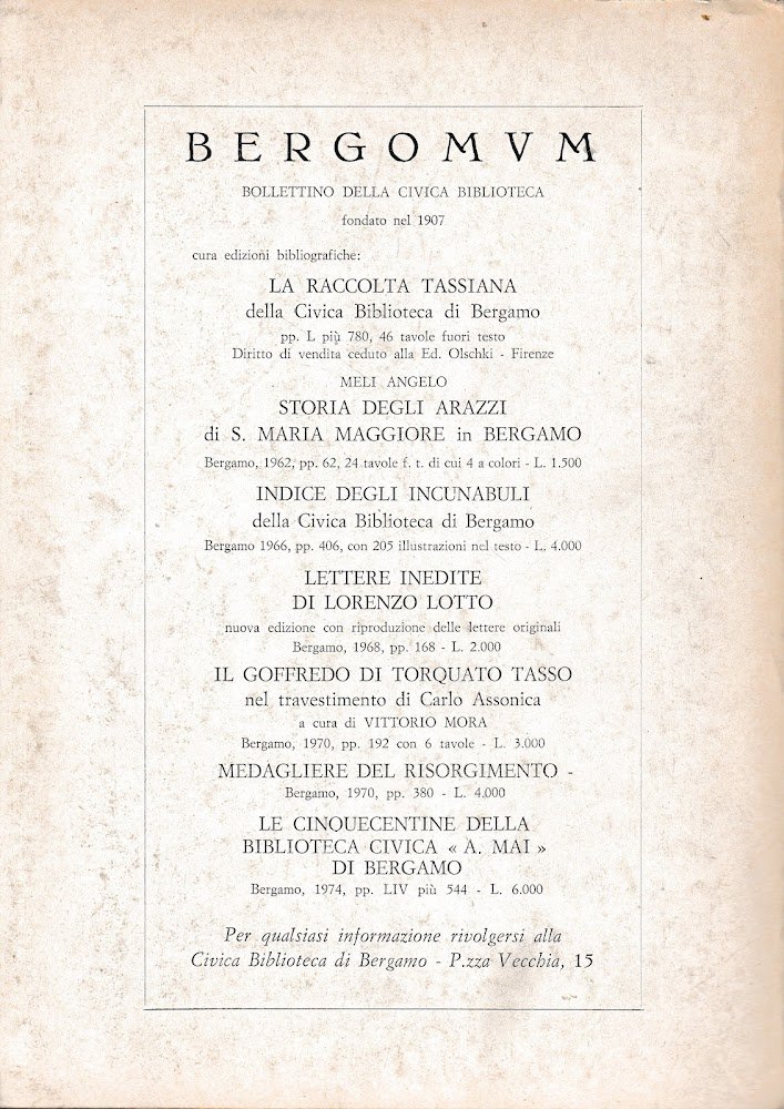 Bergomum. Bergamo città dei Mille. Studi Tassiani n. 23. Fascicolo V - Dicembre 1973 - Anno LXVII | Libri antichi e moderni | aa. vv., ,aa. vv.