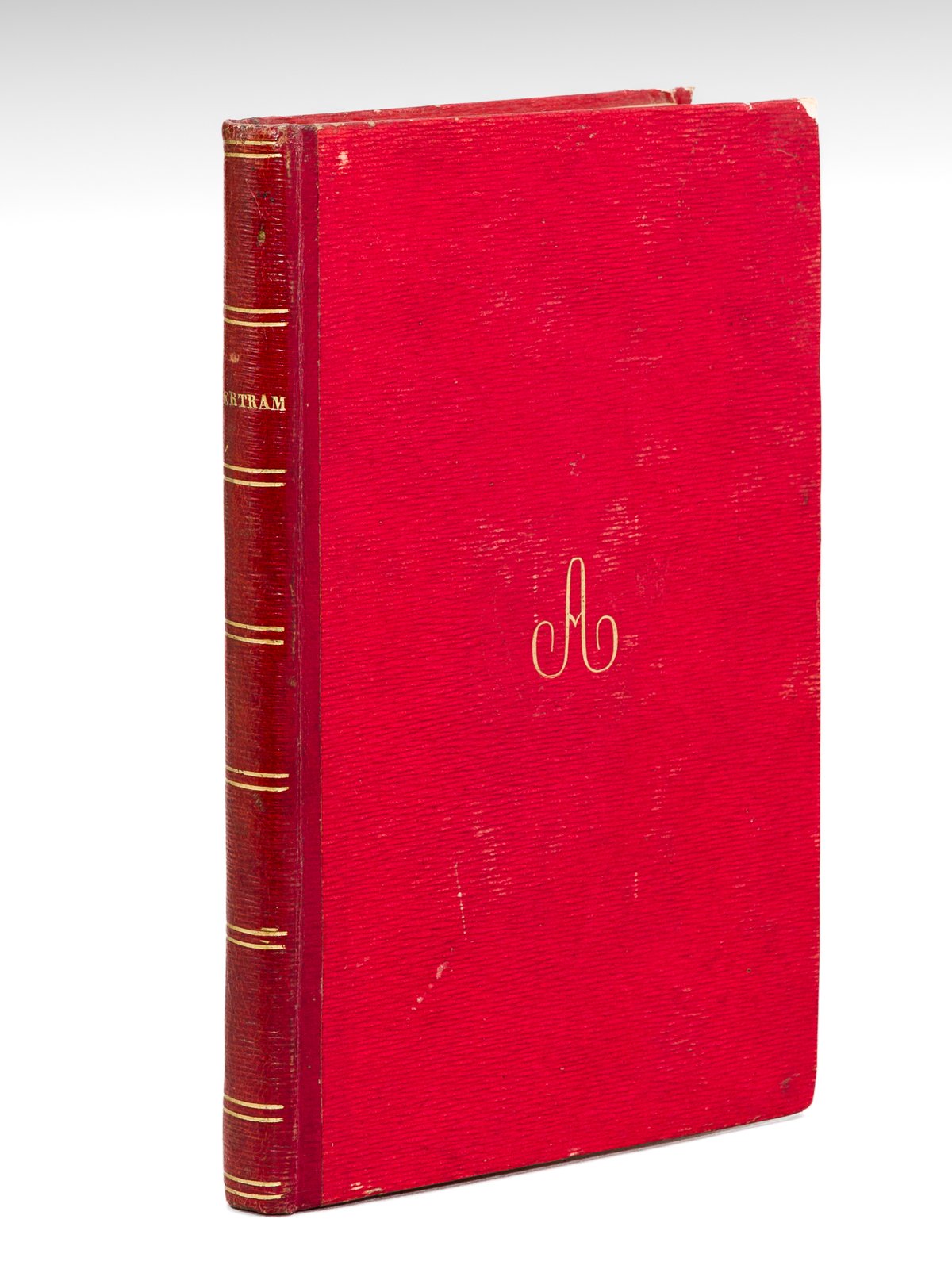 Traduite librement de l'anglois du Rèv. R. C. Maturin, par MM. Taylor et Ch. Nodier, 1 vol. in-8 reliure de l'époque demi-maroquin rouge, chiffre doré "A" au premier plat, Gide Fils, Ladvocat, Paris, 1821, 2 ff., XI-178 pp. Rare exemplaire de l'adaptation de l'oeuvre du maître du roman gothique Charles Robert Maturin (1780-1824) par Charles Nodier et le Baron Taylor. L'avertissement des traducteurs est un vrai manifeste romantique, bien qu'il s'en défende et parle d'un "genre souvent ridicule et quelquefois révoltant qu'on appelle en France romantique, et pour lequel nous croyons n'avoir pas trouvé trop malheureusement l'épithète de "frénétique". Bon exemplaire (petite piq. en dos, coins lég. frottés, bel état par ailleurs, ex-libris en garde). Escoffier, 382 ; Vicaire, VII, 762