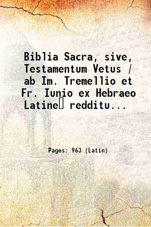 Biblia Sacra, sive, Testamentum Vetus / ab Im. Tremellio et Fr. Iunio ex Hebraeo Latine? redditum ; et Testamentum Novum / a? Theod. Beza e? Graeco in Latinum versum ; arguments capitum additis, versibusq[que] singulis distinctis, et seorsum expressis 1669