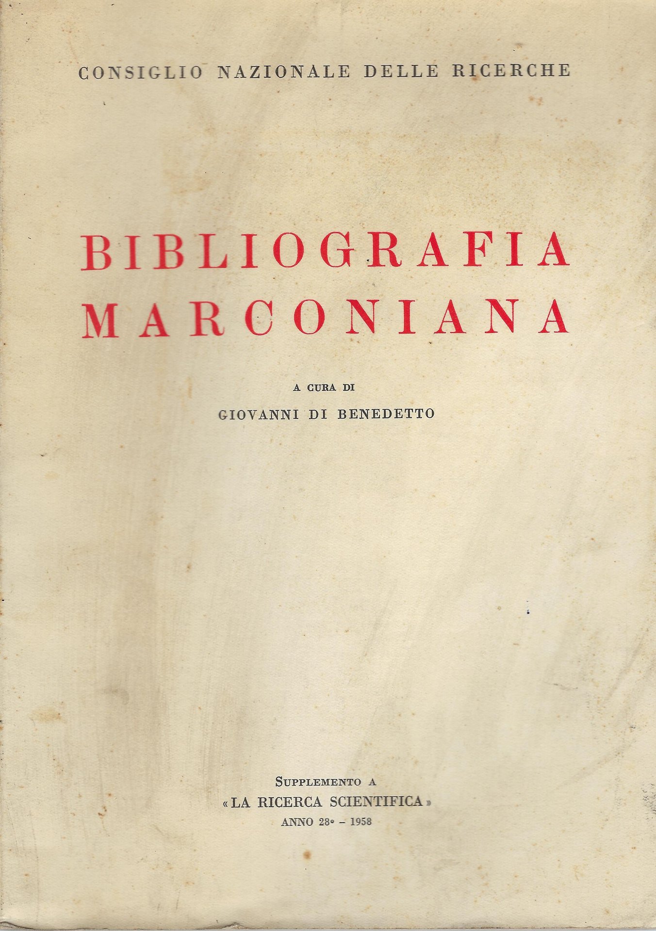 Tipografia Panetto e Petrelli, 1958. Supplemento a: La ricerca scientifica, anno 28-1958. A cura di Giovanni Di Benedetto. Prefazione di L. Sacco, 243 pp. brossura Buono (Good) copertina sciupata e in giallita con fioriture, angolo del piatto posteriore piegato, pagine ingiallite ma in ottimo stato.