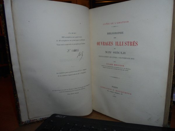 JULES, BRIVOIS. Paris, Librairie P. Rouquette, 1883. Bibliographie des OUVRAGES Illustrés du XIX° Siècle. Principalement des livres a gravures sur bois. In-4°, (27,5 cm.), m. pelle coeva, dorso a 5 nervi con titolo in oro entro tassello rosso, taglio superiore dorato, in barbe. xiii, (i). 468 pp. Uno dei 50 esemplari su carta grande d' Olanda. (n° 41 con firma dell' Autore). Bellissimo esemplare in edizione originale. Uff. E - V - 5 - 2
