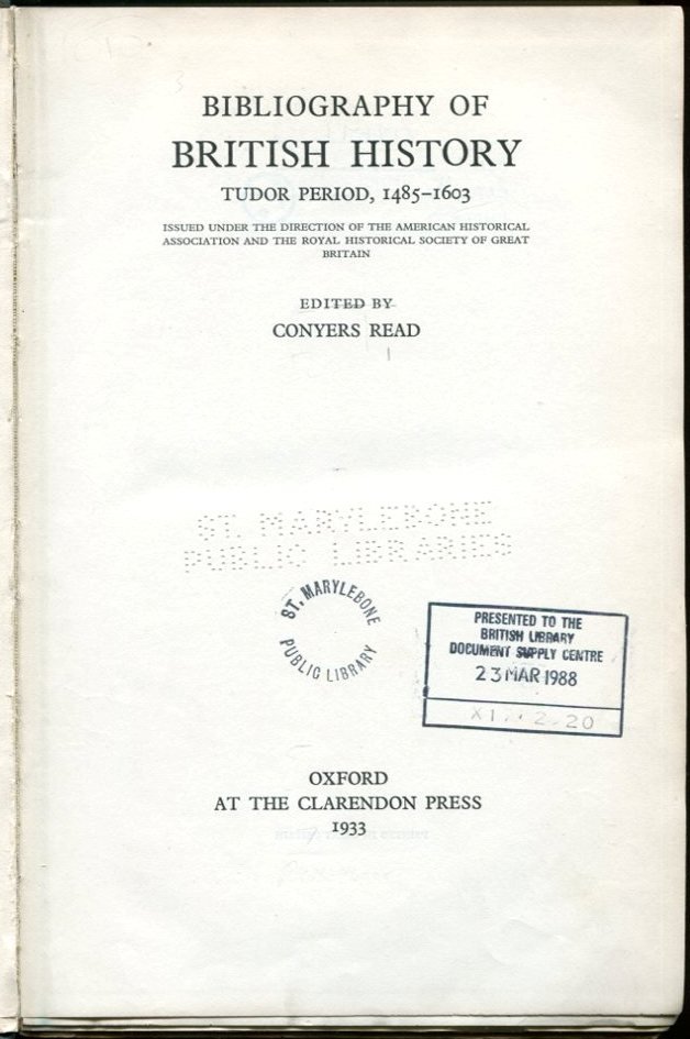 Bibliography of British History : Tudor Period 1485-1603 | Libri antichi e moderni | Read, Conyers (Editor)