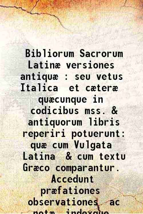 Bibliorum Sacrorum LatinÊ versiones antiquÊ : seu vetus Italica, et cÊterÊ quÊcunque in codicibus mss. & antiquorum libris reperiri potuerunt: quÊ cum Vulgata Latina, & cum textu GrÊco comparantur. Accedunt prÊfationes, observationes, ac notÊ, indexque novus ad Vulgatam e regione editam, idemque locupletissimus. / Opera & studio d. Petri Sabatier. Volume 1 1743
