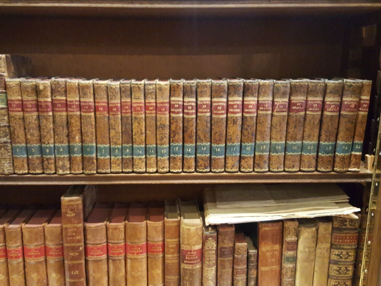 [PRIMERA EDICION].- Madrid: Imp. de D. E. Aguado [Editan, Basilio Antonio Carrasco Hernando y Fr. Juan Antonio Diaz Merino], 1826-1829.- 25 VOLS. con (XLVI,344 p.; 392 p.; [1 h.], VIII,224 p.; 388 p.; 230 p.; 352 p.; 400 p.; 332 p.; 318 p.; [1 h.], XVI,322 p.; 330 p.; X,350 p.; 374 p.; [1 h.], IV,327 p.; XXIV p., [1 h.], 376 p.; 415 p.; VII,388 p.; [1 h.], IV,380 p.; 375 p.; 404 p.; XXXII, [1 h.], 349 p., [1 h.]; [1 h.], 410 p., [2 h.]; 350 p; 375 p.; VI,267 p.); 8º (17,1 x 11 cm); Buena impresión sobre papel de hilo verjurado; Enc. en Plena Piel pasta español, lomo con dos tejuelos (rojo y verde), Cortes pintados en color granate.- La obra reúne una importante selección de obras de autores tanto extranjeros como españoles en defensa de la Religión Católica.* Colección completa en excelente estado. Los Tomos VII, XII y XIV tienen al principio algunas alteraciones en la paginación por error de imprenta, pero están completos. HISTORIA DE LA IGLESIA CATÓLICA, PATRÍSTICA Y PENSAMIENTO CATÓLICO EN GENERAL