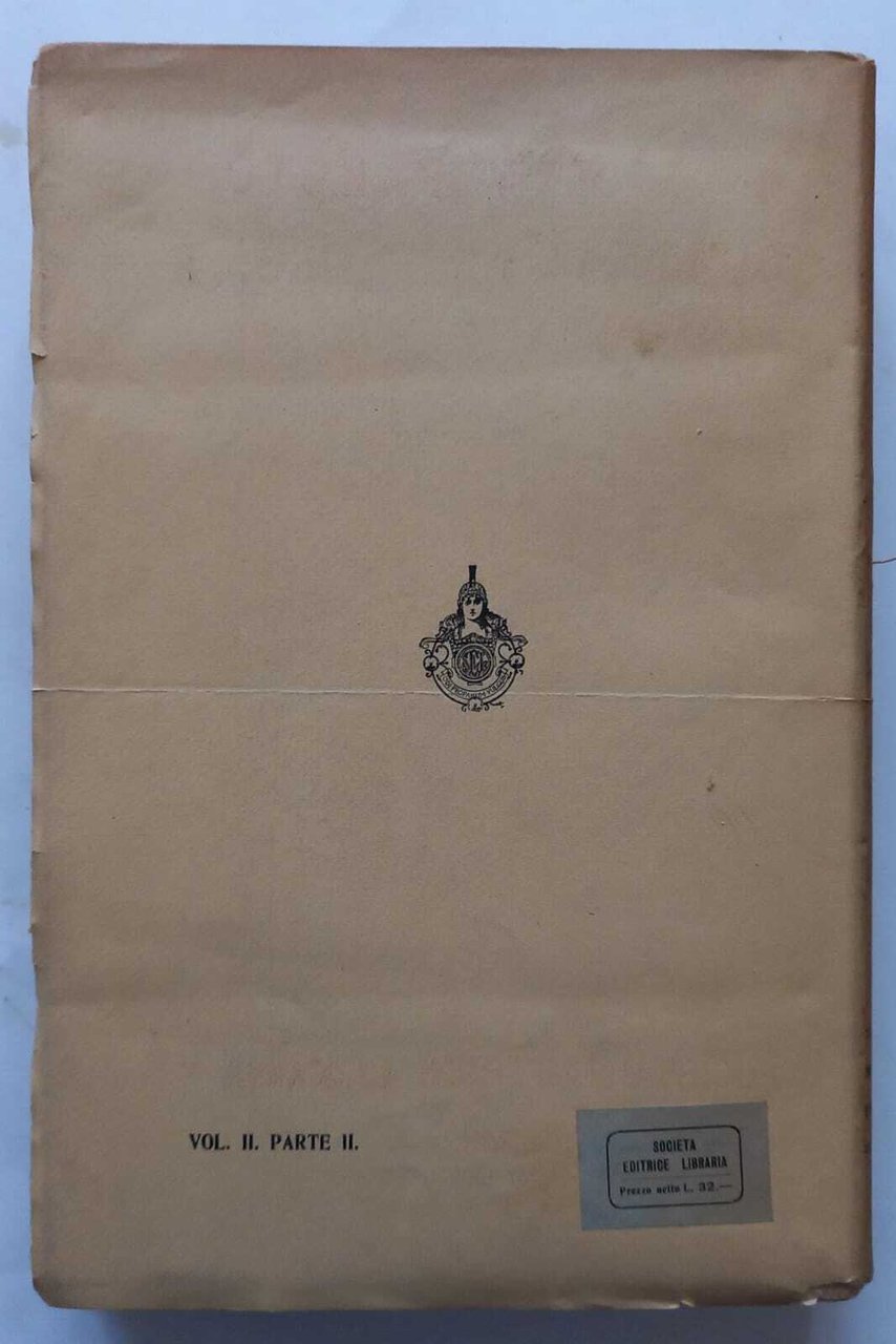 Biblioteca di Storia Economica. Volume secondo - Parte seconda: La proprietà fondiaria in Grecia sino alla conquista romana (P. Guiraud); Per la storia dell'evoluzione agraria di Roma sotto gli Imperatori (Rodbertus); La storia agraria roama in rapporto al diritto pubblico e privato ( M. Weber); La distribuzione del suolo italiano e le tabelle alimentari (Th. Mommsen); I concetti economici fondamentali del Corpus Iuris Civilis (H.V. Scheel). Brossura editoriale con tagli e mancanze, interno con tracce di fioriture ma completamente fruibile. 752 Mediocre (Poor) .