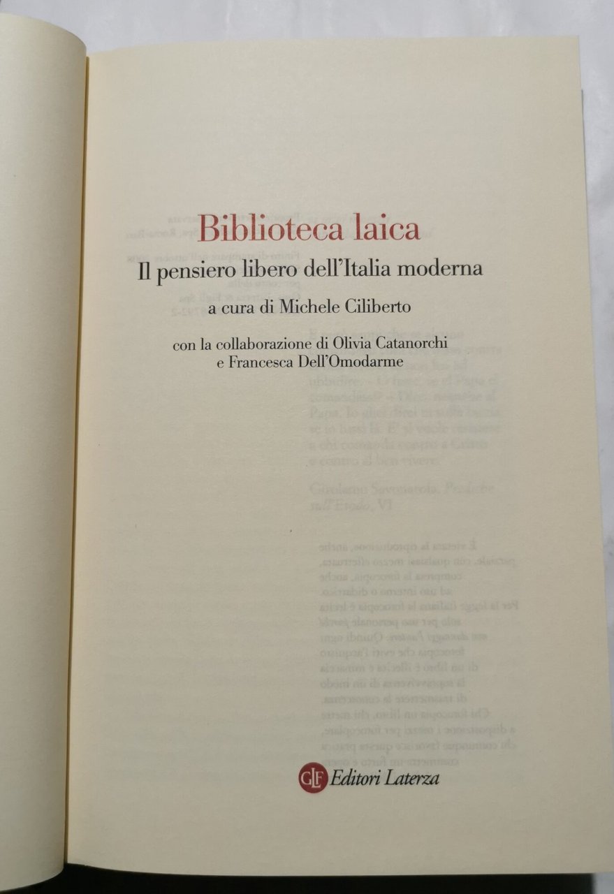 Biblioteca laica : il pensiero libero dell'Italia moderna | Libri antichi e moderni | Ciliberto,Michele