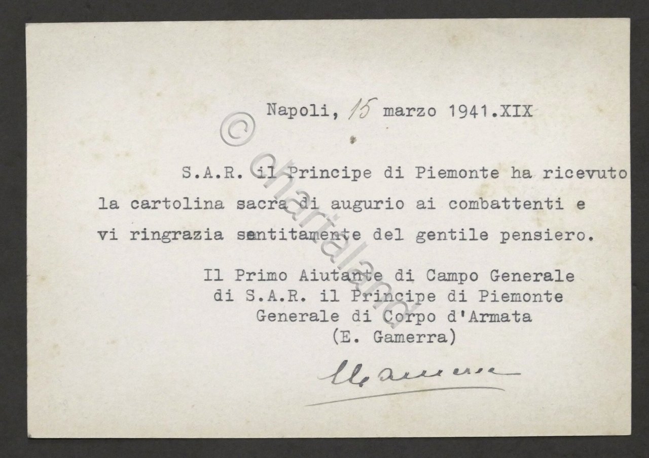Biglietto con autografo di E. Gamerra Primo Aiutante di Campo di S.A.R. - 1941 | Libri antichi e moderni |