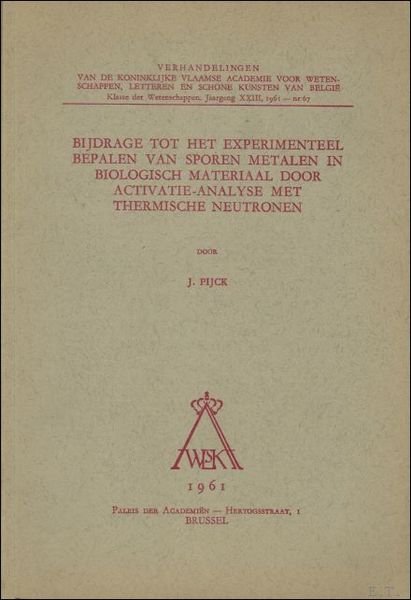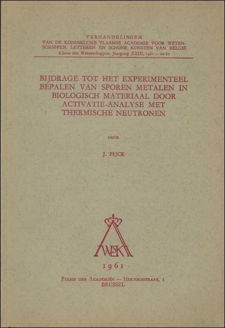Bijdrage tot het experimenteel bepalen van sporen metalen in biologisch materiaal door activatie-analyse met thermische neutronen. | Libri antichi e moderni | J. Pijck.