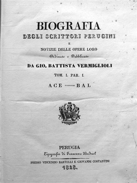 BIOGRAFIA DEGLI SCRITTORI PERUGINI e notizie delle opere loro. Ordinate e pubblicate da… | Libri antichi e moderni | Vermiglioli G. Battista.