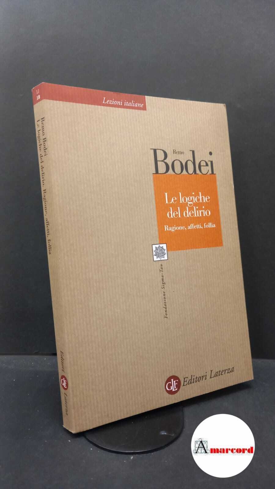 Bodei, Remo. Le logiche del delirio : ragione, affetti, follia. Roma [etc.! GLF editori Laterza, 2000 | Libri antichi e moderni | Bodei, Remo