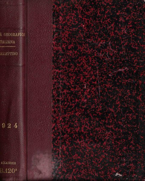 Anno 1924 del "Bollettino della Reale Società Geografica Italiana" successivamente rilegata in un unico volume. Coperta rigida lievemente ingiallita dal tempo presentante segni di usura da scaffale ai margini e da sfregamento ai piatti con abrasioni agli stessi. Pagine fruibili anche se brunite dal tempo in particolare ai tagli e sporadicamente fiorite. Il volume potrebbe contenere timbri ed etichette dell'Istituto Veneto, regolarmente acquisito dalla nostra libreria. Numero pagine 688.