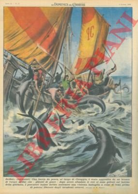 Branco di delfini assale peschereccio, presso Chioggia, per rubare il pesce. | Libri antichi e moderni | Molino W.