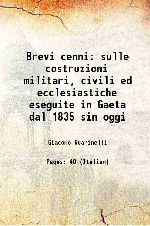 Brevi cenni sulle costruzioni militari, civili ed ecclesiastiche eseguite in Gaeta dal 1835 sin oggi 1853 | Libri antichi e moderni | Giacomo Guarinelli