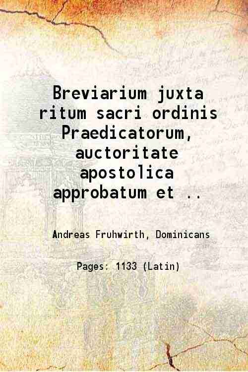 Breviarium juxta ritum sacri ordinis Praedicatorum Volume 2 1894 | Libri antichi e moderni | Fr. Andreae Fruhwirth